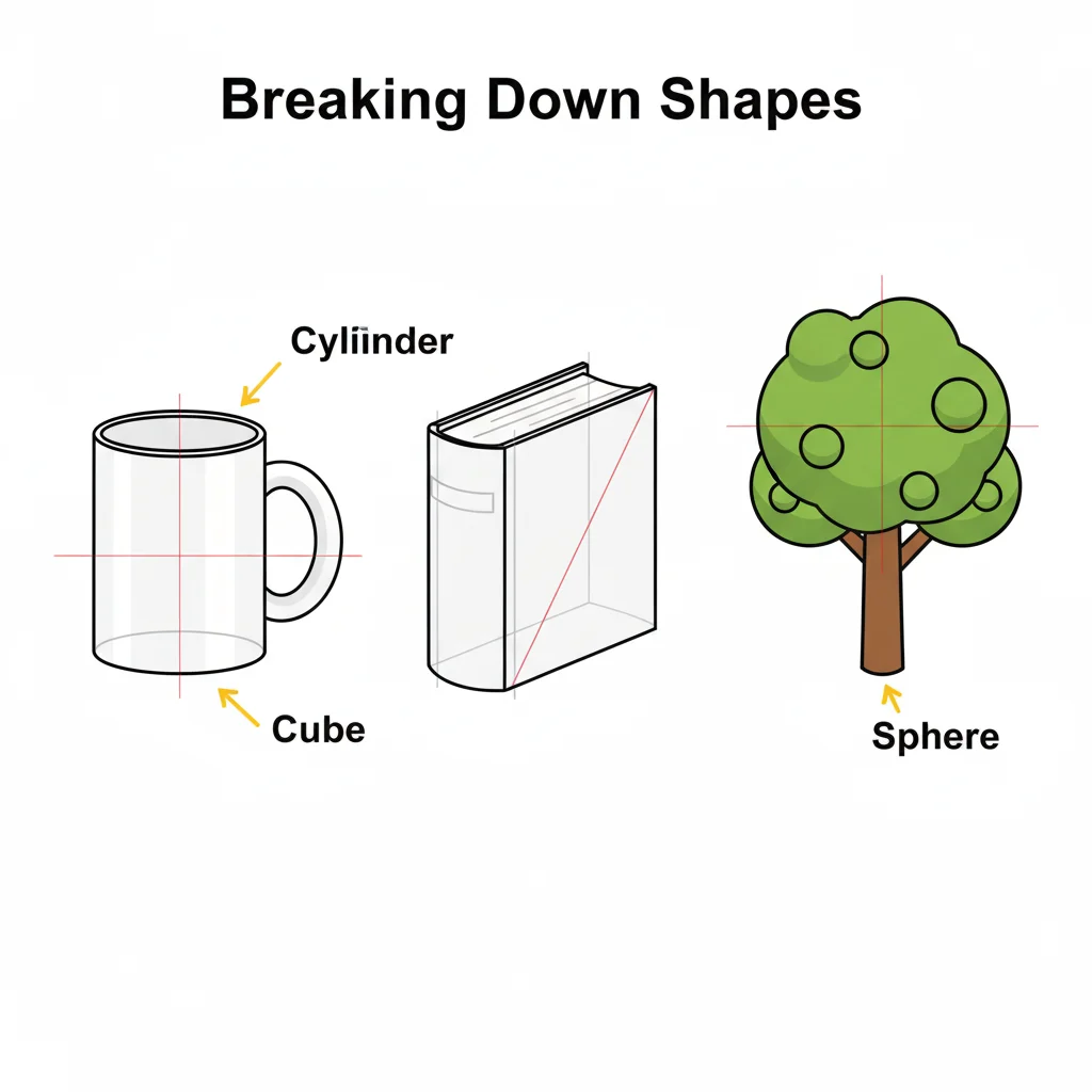Every object can be broken down into basic shapes. Seeing these underlying forms makes complex subjects easier to draw.